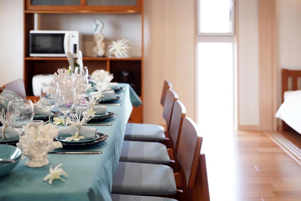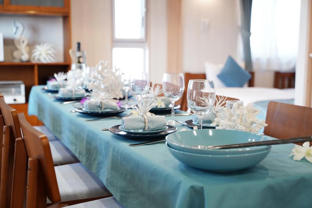 At Hotel Haabesu Okinawa, the dining experience is uniquely designed to cater to the adventurous spirit of its guests. The centerpiece of the hotel's culinary offerings is the inviting shared kitchen, a communal space that encourages interaction and creativity among travelers. Here, guests can unleash their inner chefs, preparing delightful meals using fresh, local ingredients sourced from the vibrant markets of Okinawa. The kitchen is equipped with modern appliances and ample cooking utensils, making it easy for guests to whip up anything from traditional Japanese dishes to international favorites.
