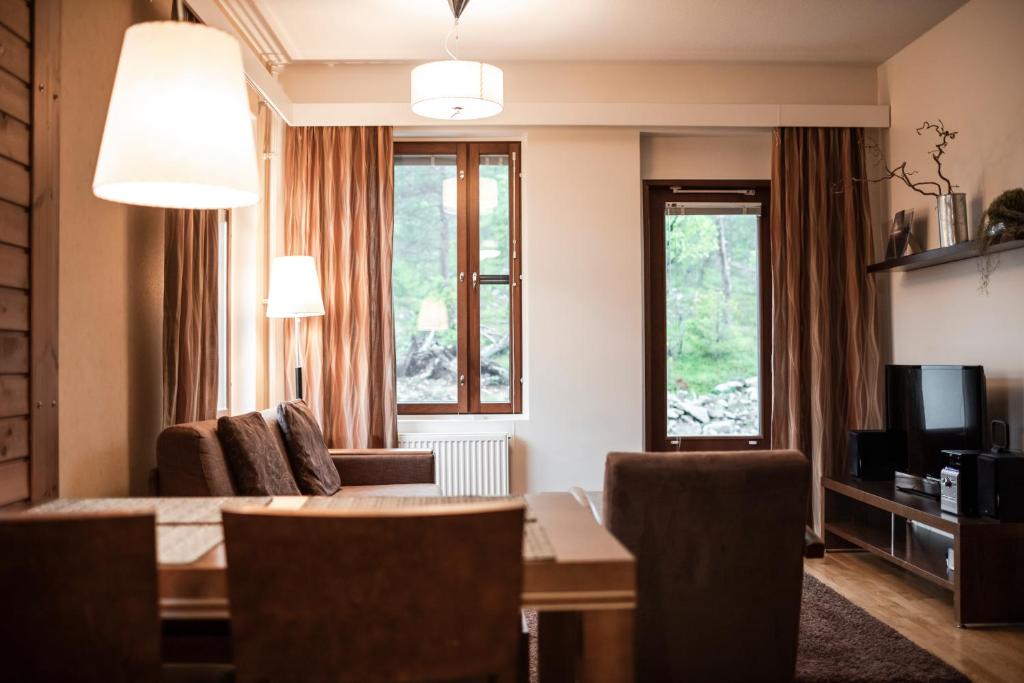 Lapland Hotels Saaga in Yllasjarvi, Finland offers an impressive selection of rooms to suit every traveler's needs. From cozy studios to spacious two-bedroom apartments, there is something for everyone at this charming hotel.